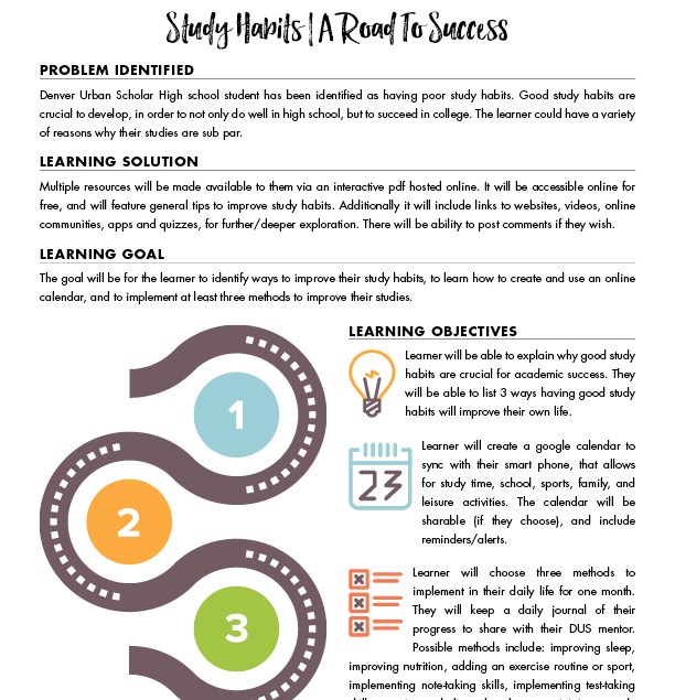 Learning Roadmaps for Study Habit Development October 5, 2016November 1, 2017 by Christina Moore In Instructional Design Leave a comment Learning Roadmaps for Denver Urban Scholars • How to improve study habits. chm_learningroadmaps Share this: Click to share on Facebook (Opens in new window) Facebook Click to share on LinkedIn (Opens in new window) LinkedIn Click to share on Pinterest (Opens in new window) Pinterest Click to print (Opens in new window) Print Click to email a link to a friend (Opens in new window) Email Click to share on Reddit (Opens in new window) Reddit Click to share on X (Opens in new window) X Like Loading... Related